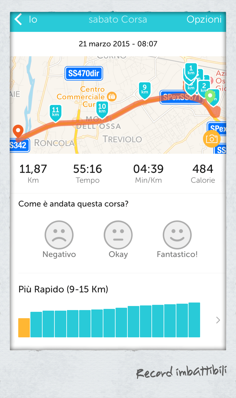 Una notte per caso, mentre spipoli insonne sul cellulare alla ricerca di qualcosa da fare per ricominciare a dormire, imbattendoti nell’App che usi ogni volta che vai a correre per registrare performance e percorsi, realizzerai che non batterai mai il tuo record di corsa registrato un anno prima se, quel giorno, gli ultimi 4 km li avevi fatti in auto a 90km/h senza spegnere la App. #cosedarunner