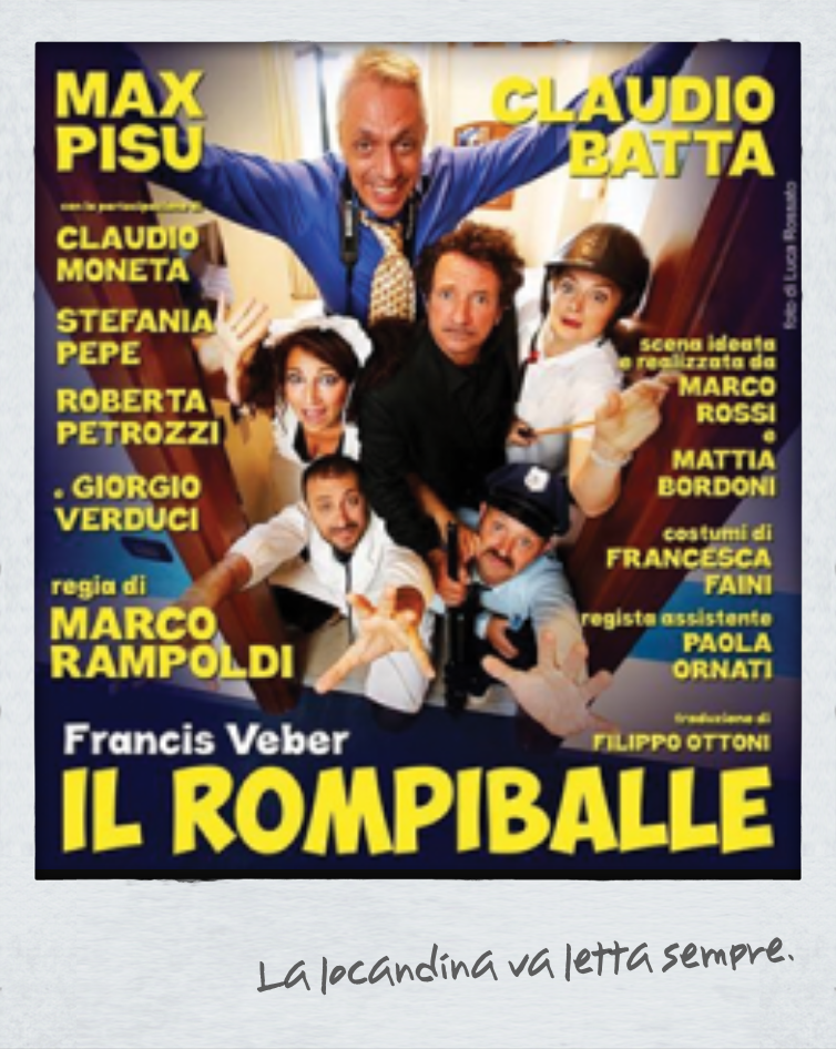 E potresti scoprire che stai per andare a vedere Il Rompiballe di Francis Veber  quando ormai sei nel foyer del teatro, mentre aspetti che la tua amica arrivi coi biglietti, dopo aver passato venticinque minuti (prima di uscire di casa) a leggerti le recensioni e la trama di un altro spettacolo. Ecco.