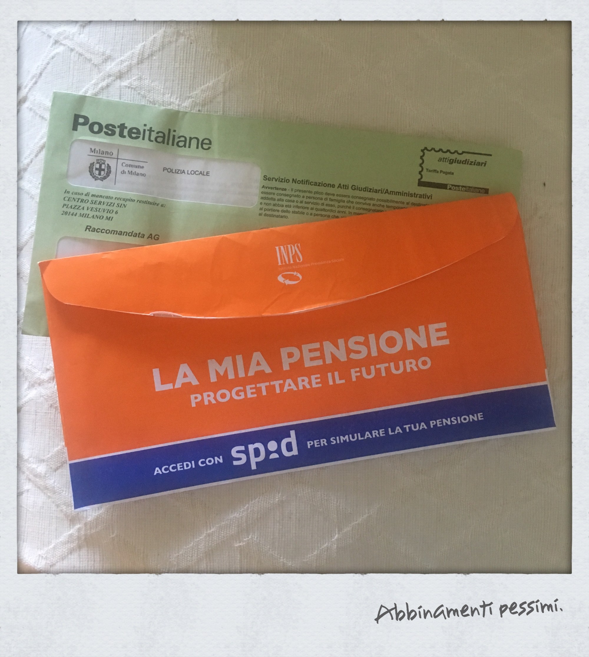 Se invece parliamo di buste verdi (multe) o buste arancioni (computo contributivo pensionistico), ecco in questo caso il verde e l’arancione proprio non mi piacciono. Trovo che siano colori odiosi. Davvero.