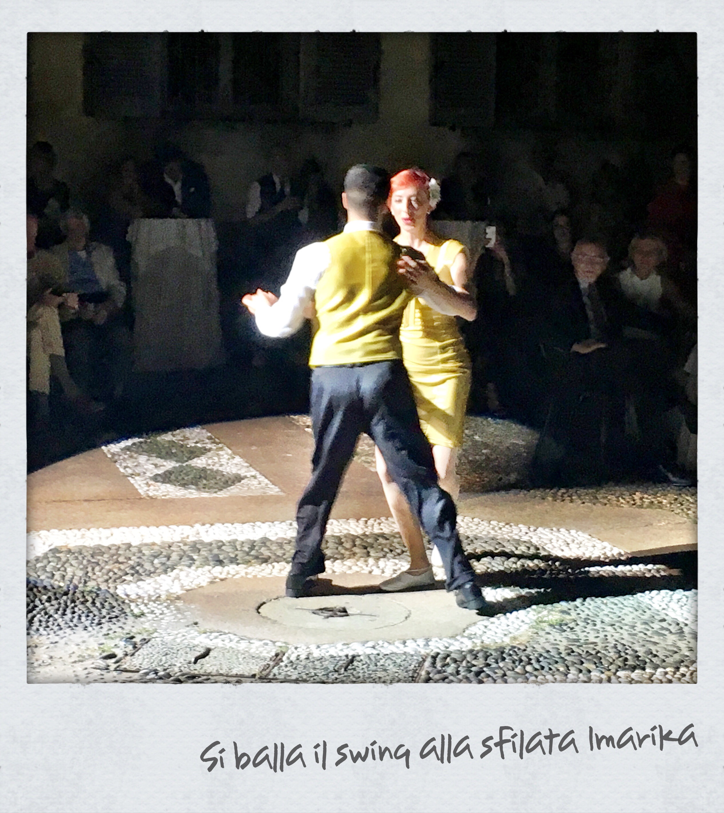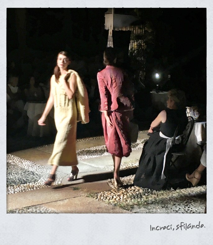 Se l’evento si svolge tutto nel cortile del palazzo, potrai assistere alla sfilata di moda, al concerto delle McKeeney Sisters e all’esibizione di una divertente coppia di ballerini, tutto nella stessa location; ma assisterai anche al defilè di tutte le invitate dell’evento che per l’occasione indosseranno i loro abiti più belli e alla moda. E realizzerai che tutte le donne ti sembreranno modelle. Anche i bambini ti sembreranno dei modelli. Anche gli uomini presenti ti sembreranno dei modelli. Tutti ti sembreranno dei modelli.  E magari qualche modello lo incroci pure e ti chiederai: ‘ma lui è un modello oppure è solo bello?’ Perchè saranno tutti bellissimi nei loro vestiti da cocktail e da sera lunghi, colorati, dorati, argentati, pastello, fiorati… Tutti tranne te, che sei rimasta uguale a te stessa, con abito nero e accessori colorati per non rischiare nulla.