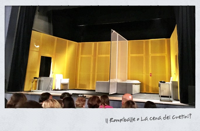 E potresti scoprire che stai per andare a vedere Il Rompiballe di Francis Veber  quando ormai sei nel foyer del teatro, mentre aspetti che la tua amica arrivi coi biglietti, dopo aver passato venticinque minuti (prima di uscire di casa) a leggerti le recensioni e la trama di un altro spettacolo. Ecco.