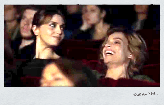Se mai ti venisse voglia di fare una foto allo schermo mentre passano alcune scene del film, o alle attrici mentre vengono intervistate, o ti venisse voglia di scriverti una frase del film particolarmente divertente o ispirata, sappi che ci sono i cecchini dell’antipirateria sparsi per la sala che potrebbero immediatamente sparare una granaiuola di pallini col fucile sul tuo smartphone, interrompendo qualsiasi comunicazione tua col resto del mondo fino alla fine dell’Universo. Questo è quanto ci hanno fatto capire all’ingresso del teatro di Radio Italia prima della proiezione del film. E’ evidente che gli addetti dell’antipirateria non avessero in mano un fucile a pallini, ma l’immagine è abbastanza eloquente del mood.
