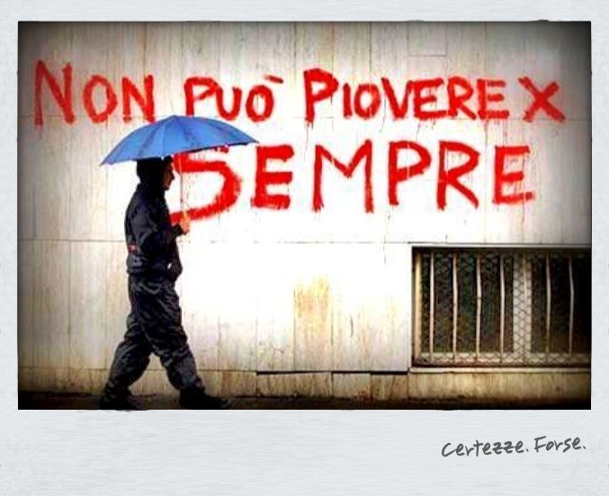 Se una domenica mattina per caso ti alzi presto e decidi di andare a fare una tapasciata di 13K su e giù per i colli bergamaschi con la tua compagna di corsa e il tempo è incerto, sappi che se lasci il k-way sul divano di casa e dopo 5K inizia a piovere che dio la manda, ti bagnerai parecchio. Non c’è nessun dubbio che ti bagnerai. Maledirai il momento in cui hai deciso di non tornare indietro a prenderlo, ma mai desiderai essere una di quelle con l’ombrellino e lo zainetto in tinta che superi correndo.