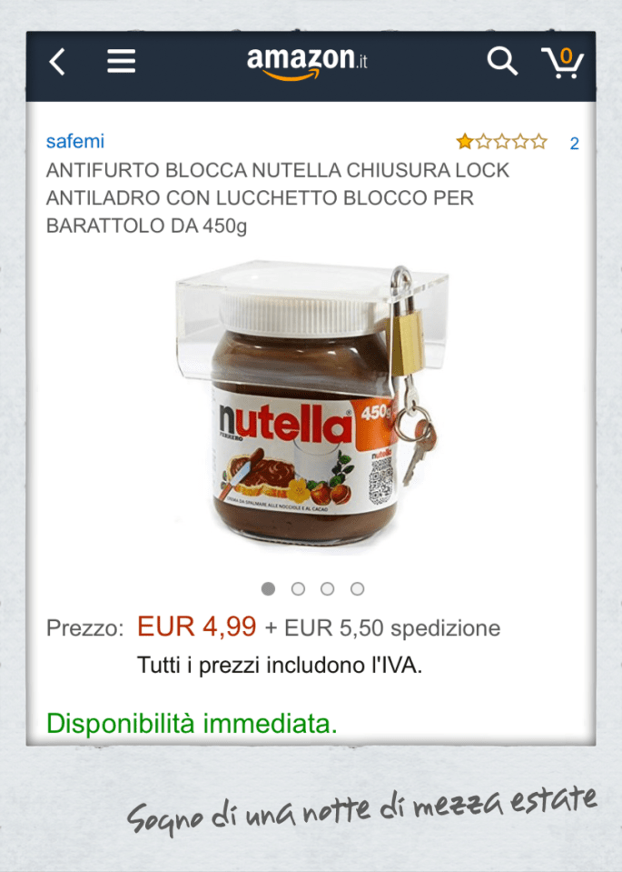 ((((Comunque, meno male che la Nutella non mi piace, altrimenti avrei dovuto comprare su Amazon il lucchetto per il vasetto gigante chiuso in dispensa.))))