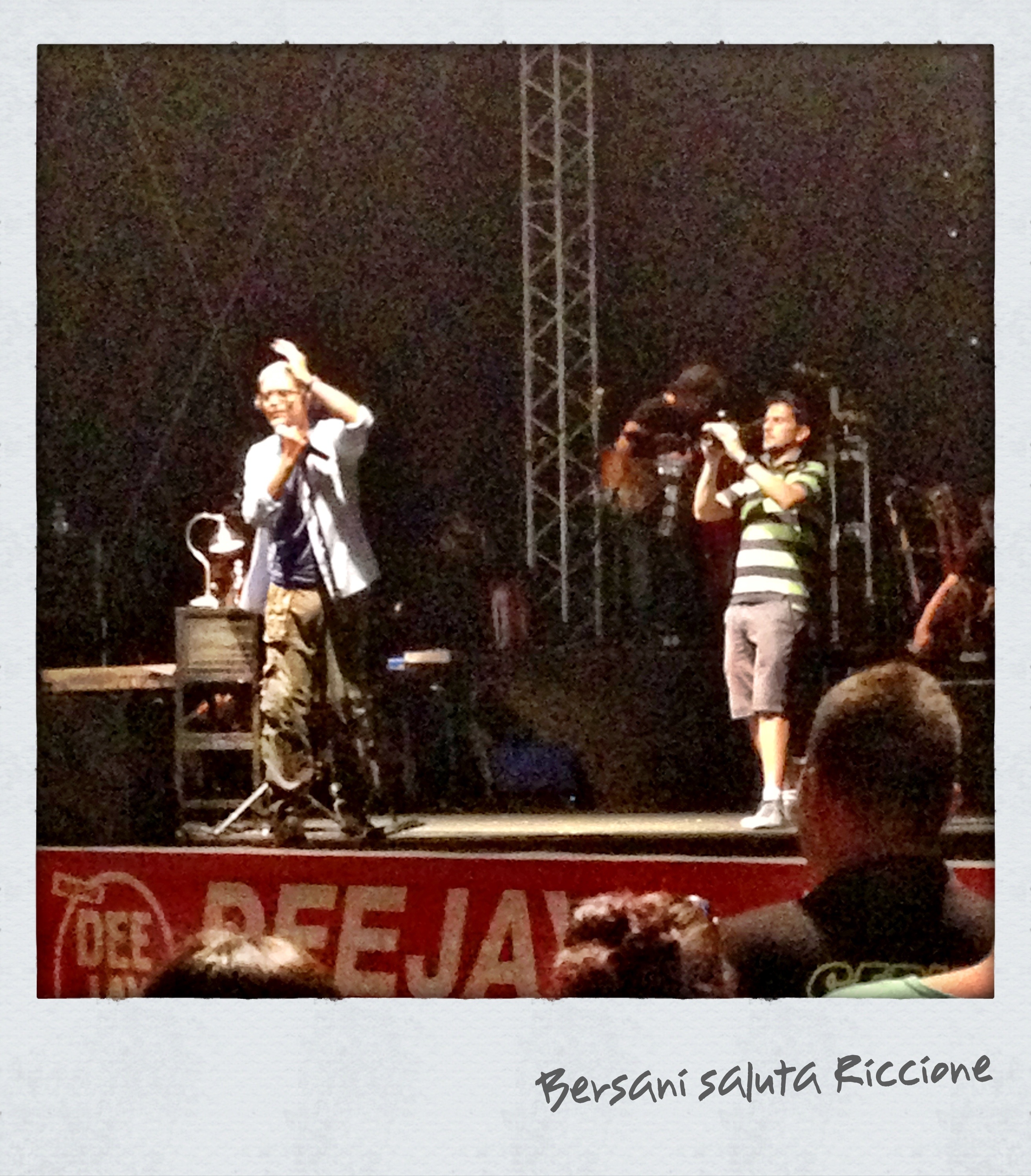 Vai sotto il palco e aspetti diligentemente che uno dei tuoi autori italiani preferiti arrivi e faccia la prova microfoni per il concerto delle 21.30. Sei sorpresa che Cattelan non lo abbia nominato, come staffetta ideale della giornata, visto che il concerto era parte delle iniziative estive della radio a Riccione, ma tant’è. Si vede che doveva essere così.