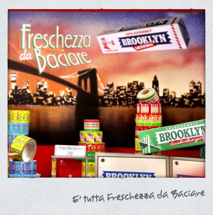E poi ricordo che quando ero piccola e avevo voglia di qualcosa di buono, andavo dalla mamma e le chiedevo una ‘cicca‘ (a Milano si chiamano così) e lei dopo aver frugato in borsa (anche allora le borse erano pozzi senza fondo da cui usciva di tutto), tirava fuori un pacchettino di Brooklyn, la Gomma del Ponte, prendeva la cicca dalla forma tipica a lastrina, avvolta in un foglietto di stagnola, avvolto a sua volta nella cartina colorata, la piegava in due, la divideva a metà e ne dava un pezzo a me e un pezzo a mio fratello.