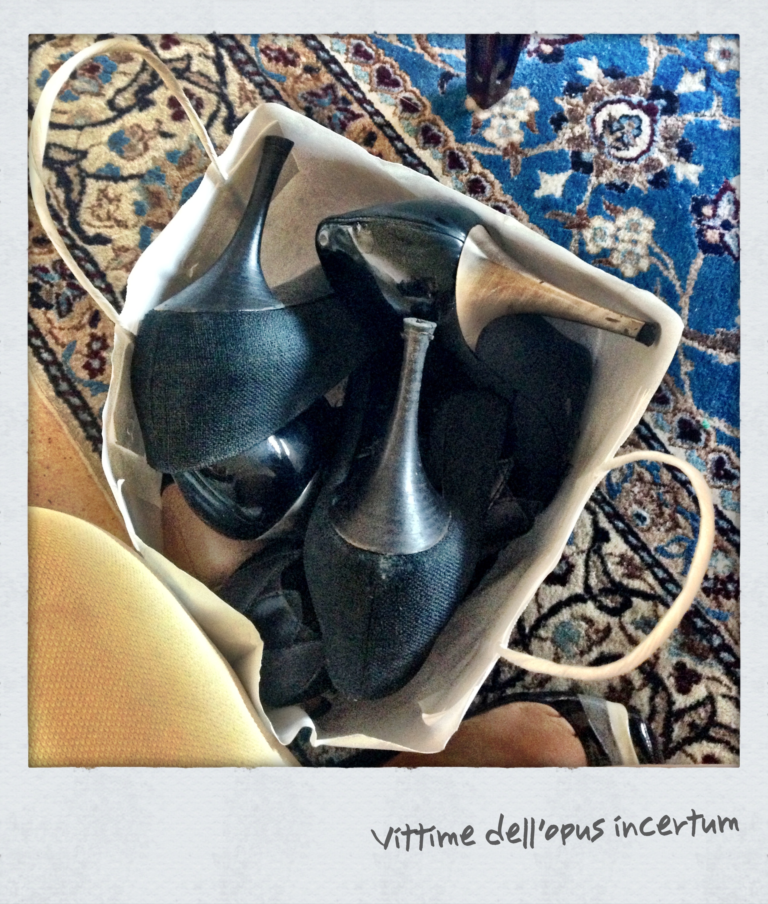 Se una mattina per caso hai un appuntamento in centro e vuoi arrivare sistemata x bene, ti provi un paio di scarpe e ti accorgi che c’è un tacchetto con il chiodo di fuori e le metti da parte per portarle dal calzolaio; così ne tiri fuori un altro paio e anche queste hanno un tacchetto con il chiodino in vista, e le metti da parte per portare anche queste dal calzolaio; allora ne tiri fuori un altro paio e un altro ancora e ti accorgi che, per un motivo o per l’altro, i chiodi del tacco a spillo picchiano sul pavimento. E così, dopo aver messo in un sacco tutte le tue scarpe coi tacchetti consumati per portarle dal calzolaio, maledirai il giorno in cui ti eri esaltata tanto davanti al progetto del condominio in cui saresti andata ad abitare (e dove abiti tutt’ora) e avevi detto che in fondo anche se il selciato che dalla tua scala va in portineria (100 metri) era di ‘opus incertum’ e non di cemento, andava bene lo stesso.
